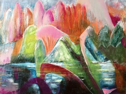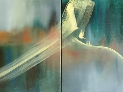 So wie in der Therapie, so arbeite ich auch in meiner Kunst prozessorientiert. Zu Beginn einer Arbeit habe ich nur eine ungefähre Vorstellung von dem, was auf „die Leinwand kommt“. Es ist eher eine innere Bewegung oder eine ungefähre Ahnung da, von dem, was sich entfalten will.