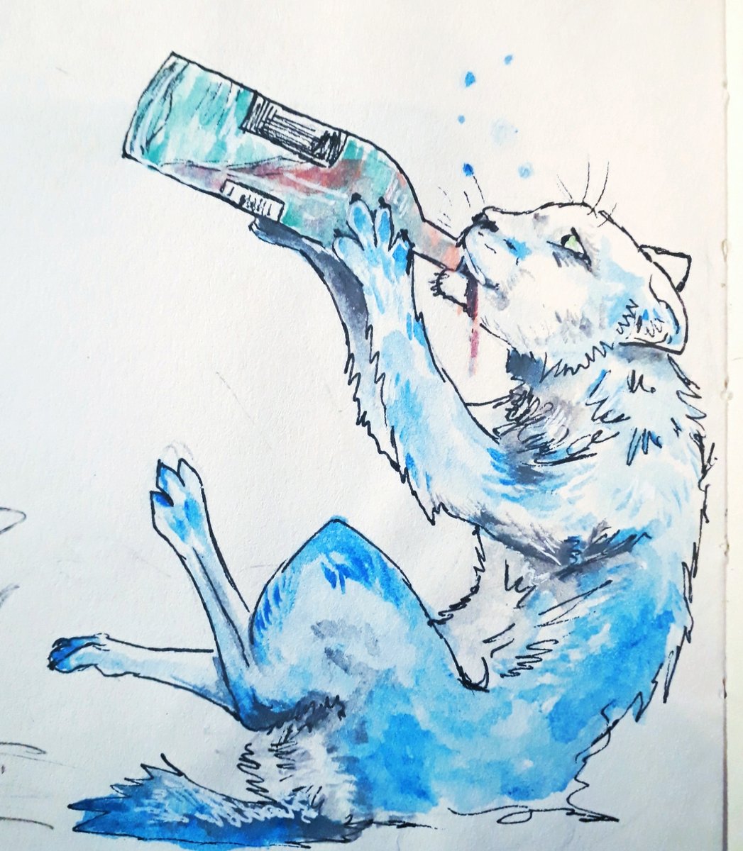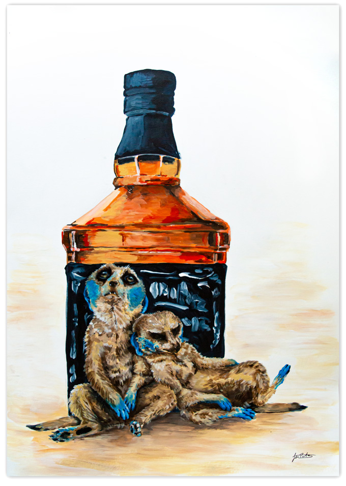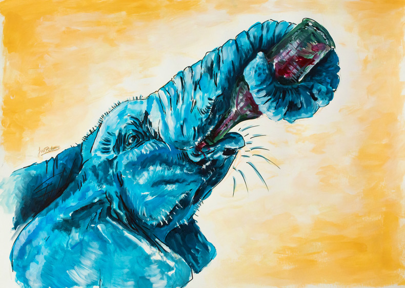 Ich bin Gina (27, Monheimerin) und male Tiere – blau und betrunken. In meiner Reihe „Drunk ’n’ Blue“ treffen Humor, Farbe und ein bisschen Selbstironie aufeinander: Der Elefant greift schelmisch zur Flasche, der Tiger tanzt mit dem Tequila, und alle nehmen das „blau sein“ sehr wörtlich - manchmal etwas daneben, aber immer ehrlich.