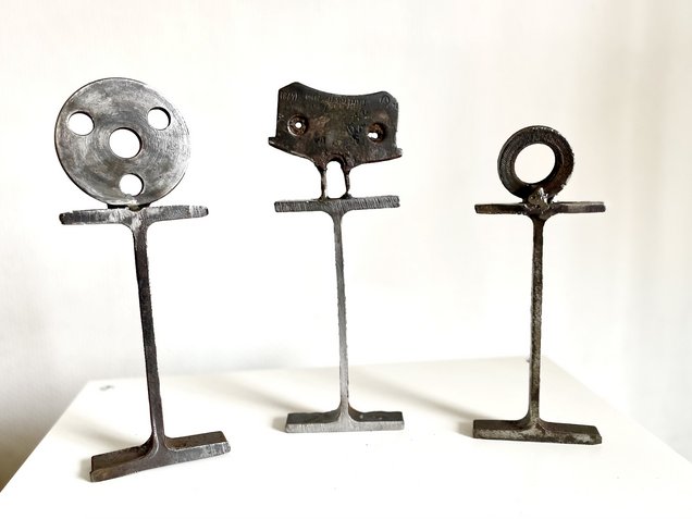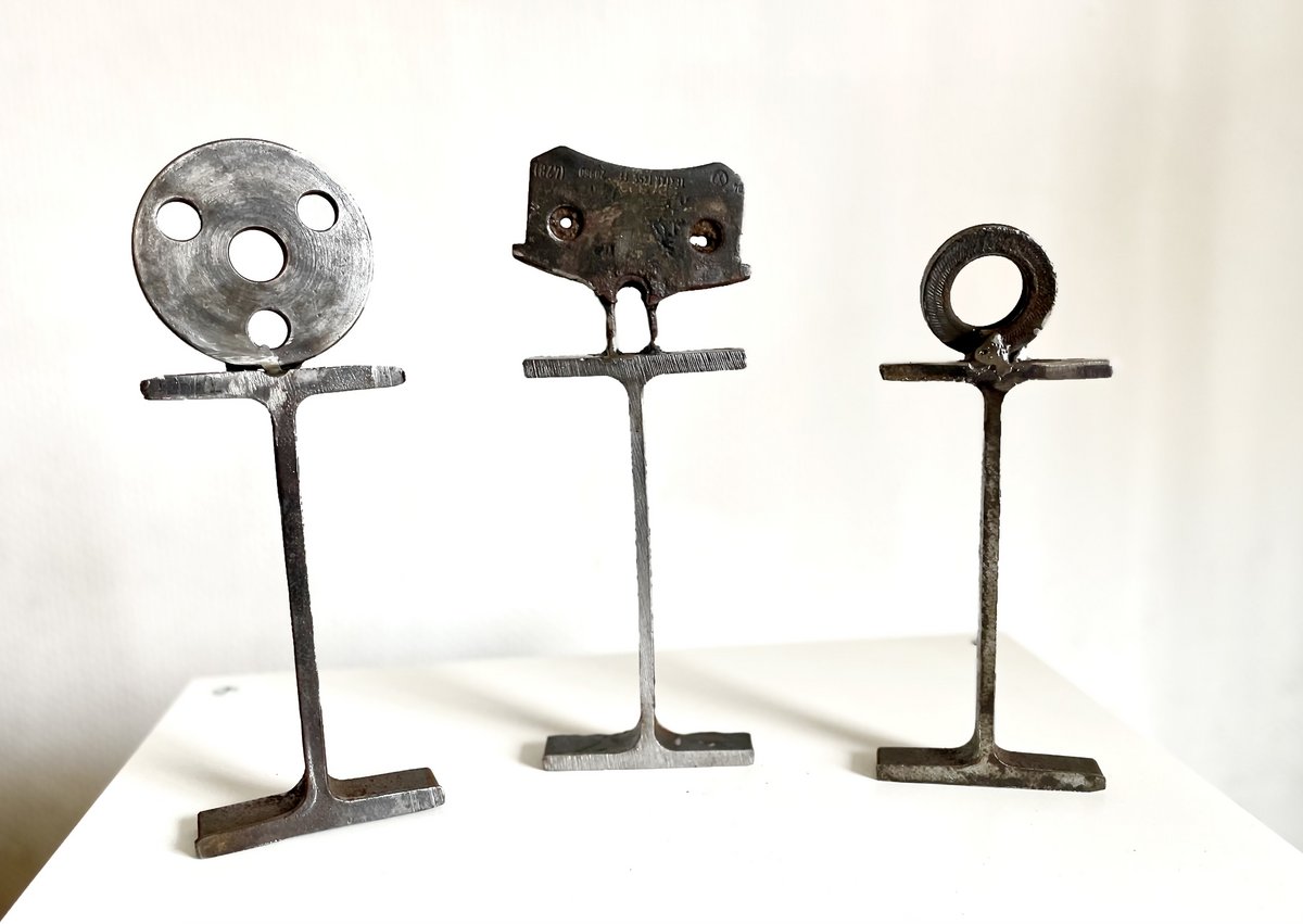 Als gebürtige Rheingauerin und ehemalige Winzerin gestalte ich auch Objekte aus alten Weinfässern und Metall. Dabei gehe ich den Weg der Reduktion. Die Mittel werden gezielt und sparsam eingesetzt, um die Charakteristika des Materials zu Wort kommen zu lassen. Aus Fasstürchen, Dauben und Metall entstehen teils archaisch anmutende Wesen.