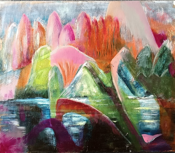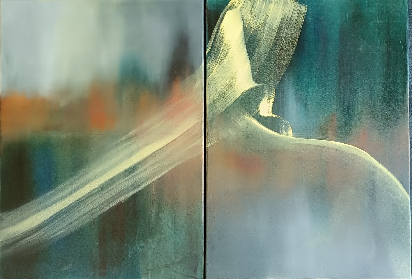 So wie in der Therapie, so arbeite ich auch in meiner Kunst prozessorientiert. Zu Beginn einer Arbeit habe ich nur eine ungefähre Vorstellung von dem, was auf „die Leinwand kommt“. Es ist eher eine innere Bewegung oder eine ungefähre Ahnung da, von dem, was sich entfalten will.